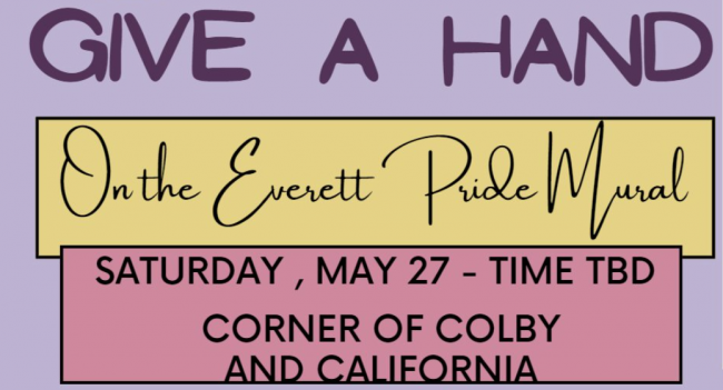 Here is your chance to be a part of Everett Pride history! Place your hand print on the Everett Pride mural going up on Saturday, May 27th on the wall between Colby and California in Everett. The mural will be on behalf of Snohomish County CASA.